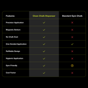 Chalk, without the chaos. The Clean Chalk Dispenser delivers chalk precisely where you need it. Twist, tap, and dominate with a clean grip. Effortless application ensures no spills or dust clouds. Your chalk goes on your hands, not the floor. Stay focused on your performance without interruptions.