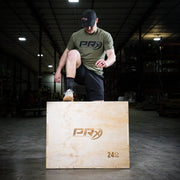 Our wood PRx 3-in-1 Plyo Box features rounded edges and corners for safety, and handle cutouts for easy transportation.