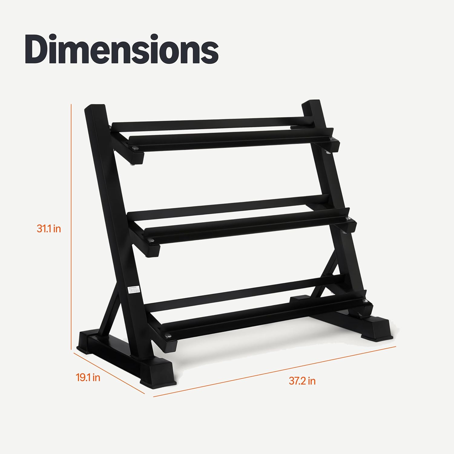 - CAPACITY: 3-tier weight rack keeps dumbbells safely stored and easily accessible; holds up to 1,000 pounds