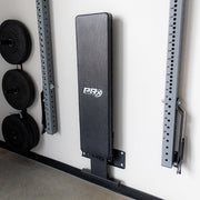 The PRx Profile® Flat Folding Weight Bench mounts on the wall and fits perfectly within any of our Profile® ONE, Profile® PRO, and Murphy Racks.