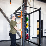 Be smart with your space and store your barbell vertically on an upright or crossmember of your Build Limitless rack.