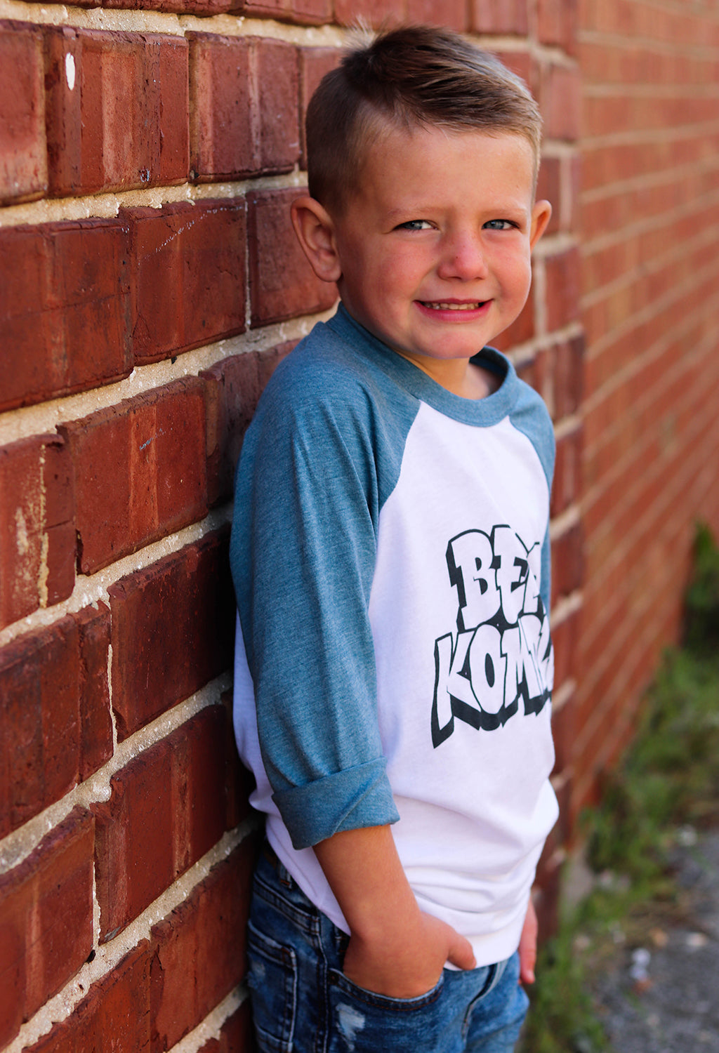 - 3/4-sleeve graphic tee with raglan sleeves