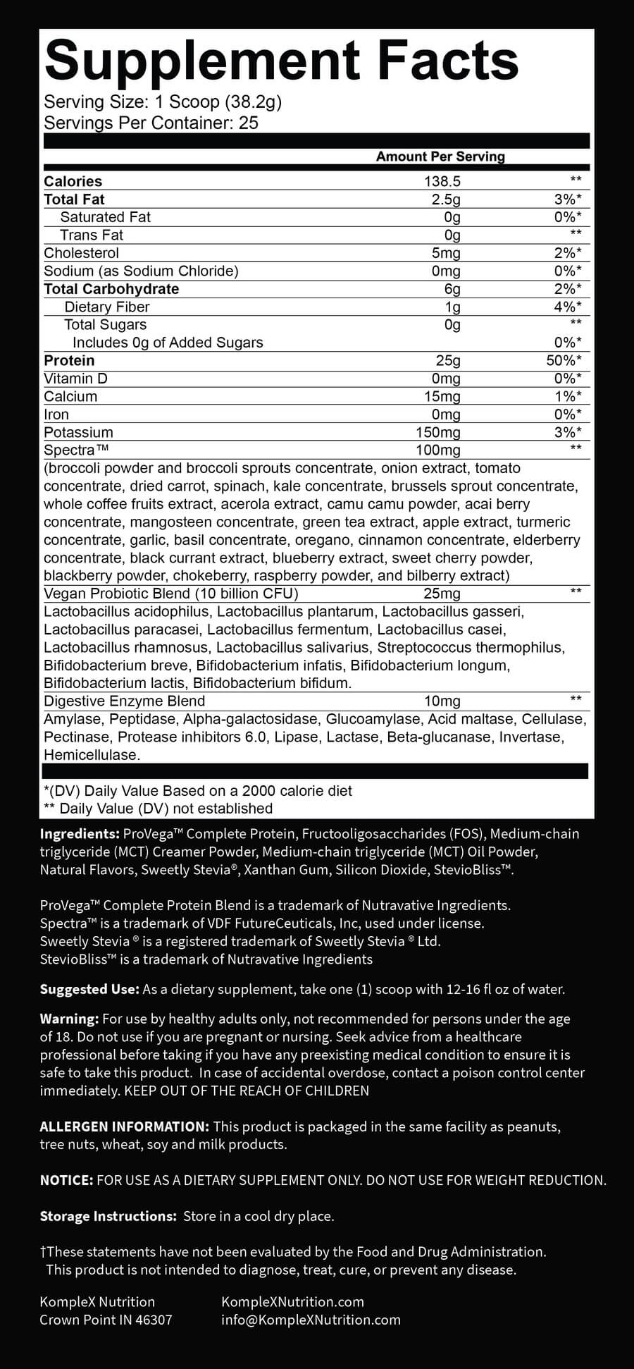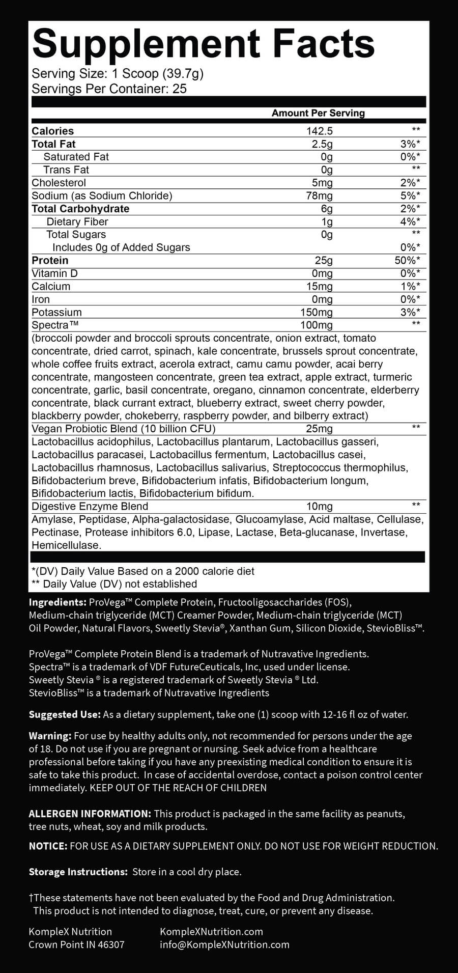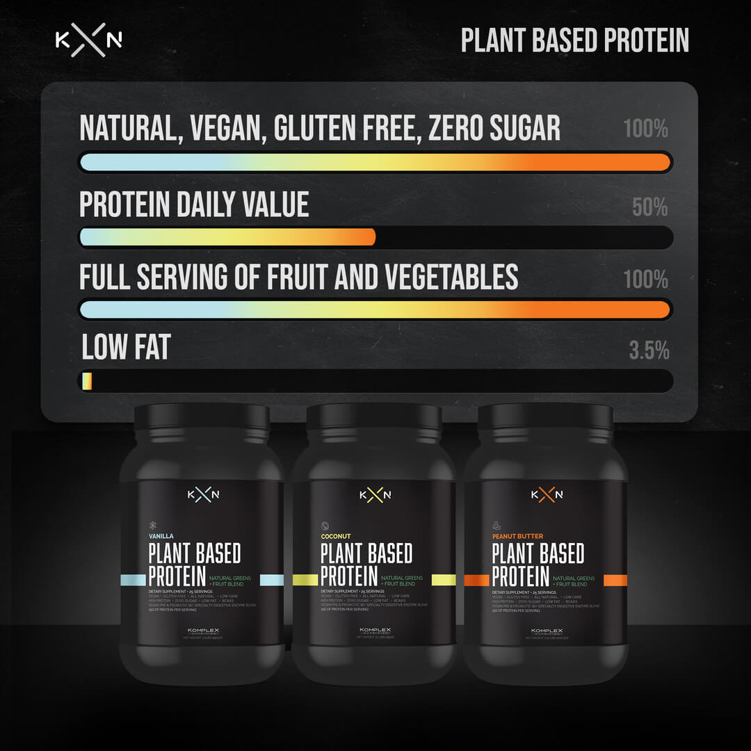 KompleX Nutrition is thrilled to announce the launch of our new Plant Based Protein Powders. Available in 3 flavors, our Plant Based Protein Powder is formulated with an all-natural blend of 29 different fruits + greens.