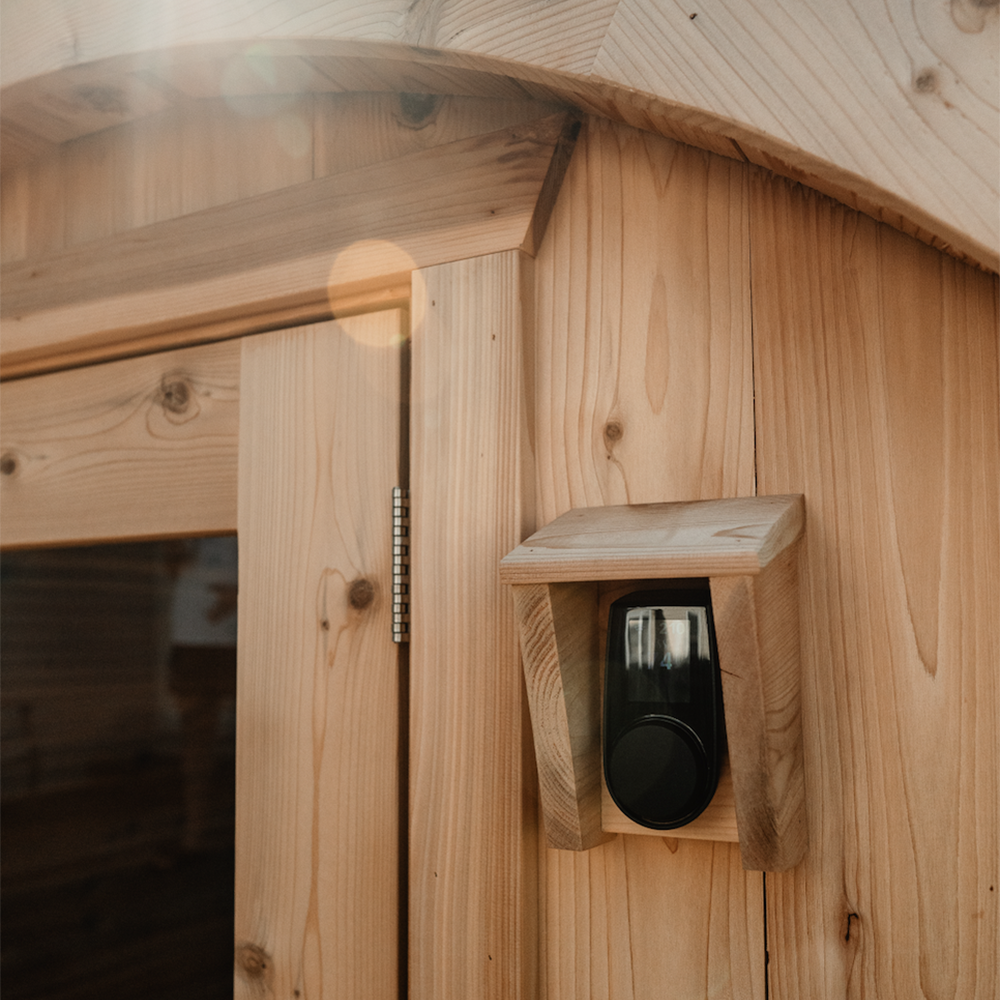 The Edwin Barrel is a traditional 6' x 7' western red cedar barrel sauna with room for up to 6-8 people that offers a simple way to bring sauna therapy to your daily lifestyle. With its barrel shape comprised of cedar, there is virtually no maintenance, and has a long lifespan.