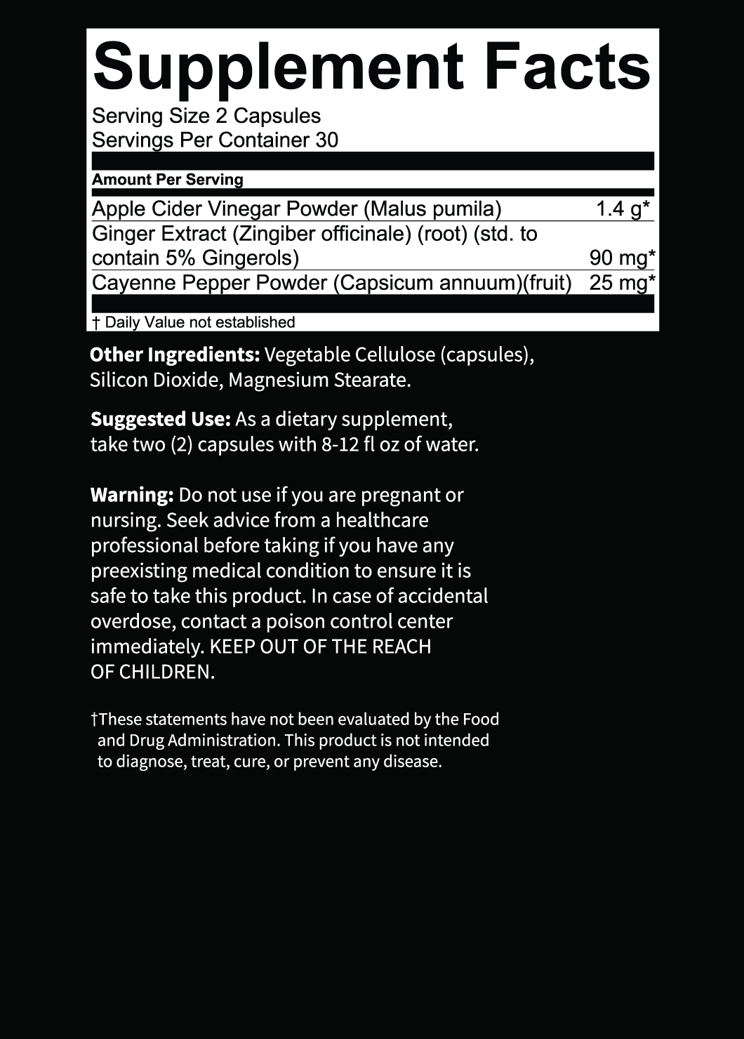For best results, we recommend taking 2 Apple Cider Vinegar capsules daily. *These statements have not been evaluated by the Food and Drug Administration