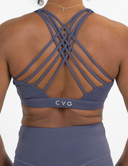 This strappy workout bra is designed to match our Twilight Purple Omni Leggings perfectly. This butterfly back design is medium impact and will have you looking your best during your workout!