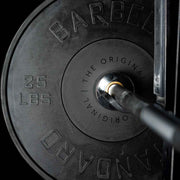 Designed with a clean black-on-black style with raised Barbell Standard text and weight. Subtle black printed 'The Original' encircles the solid steel core as a quiet reminder that your plates are from the same original source as our famous iron plates.