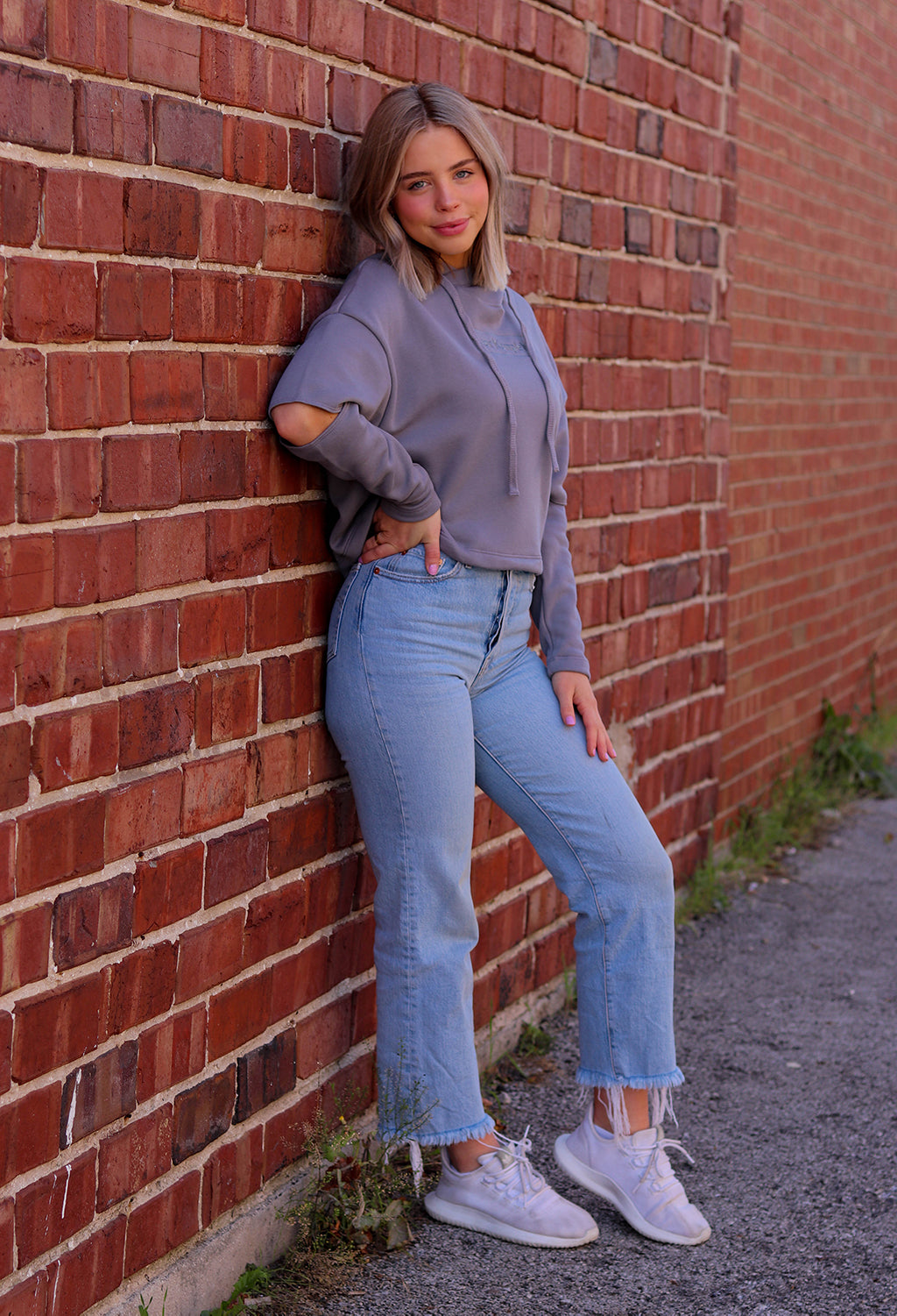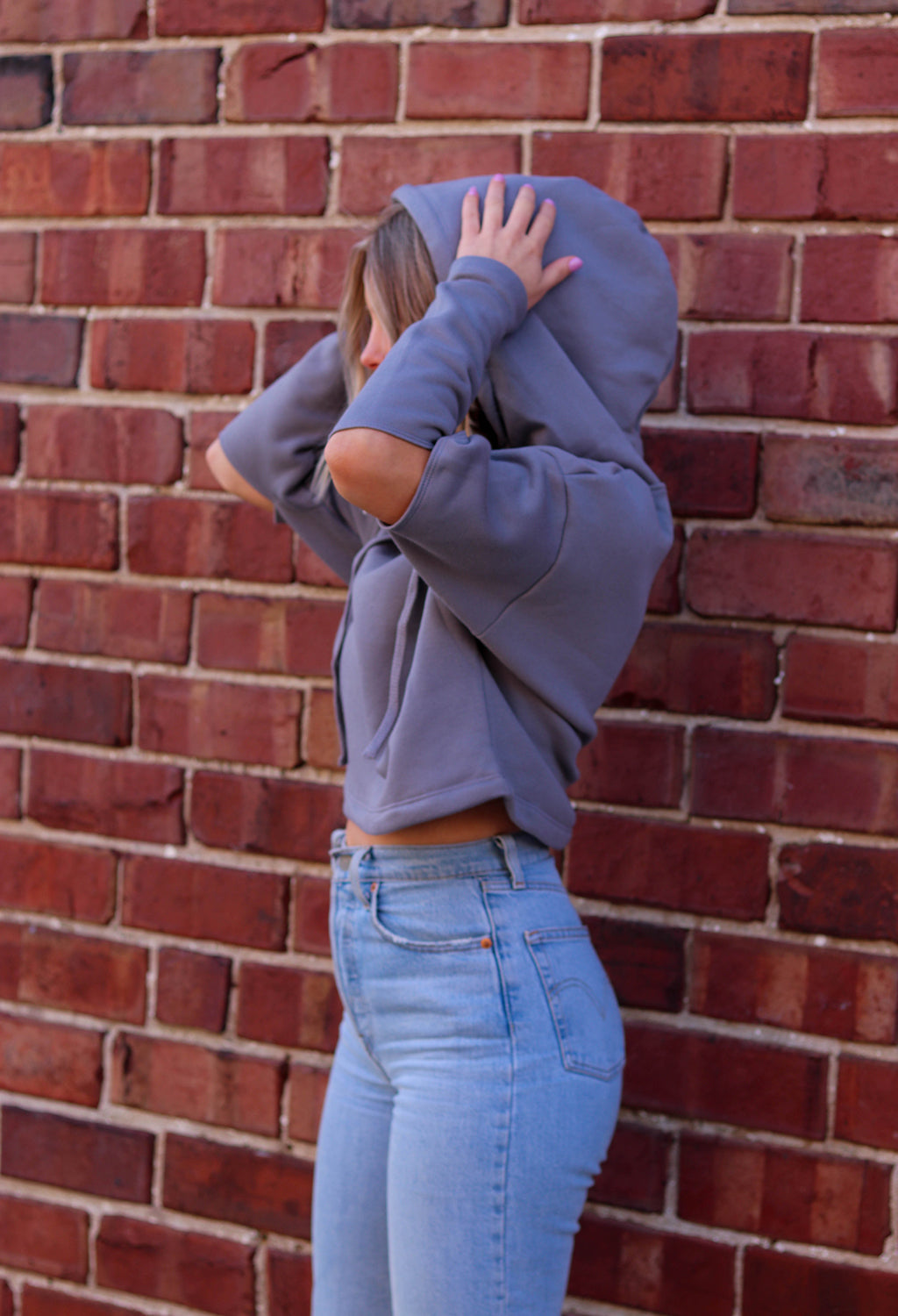 WOMEN'S CROPPED CUT OUT FLEECE HOODIE