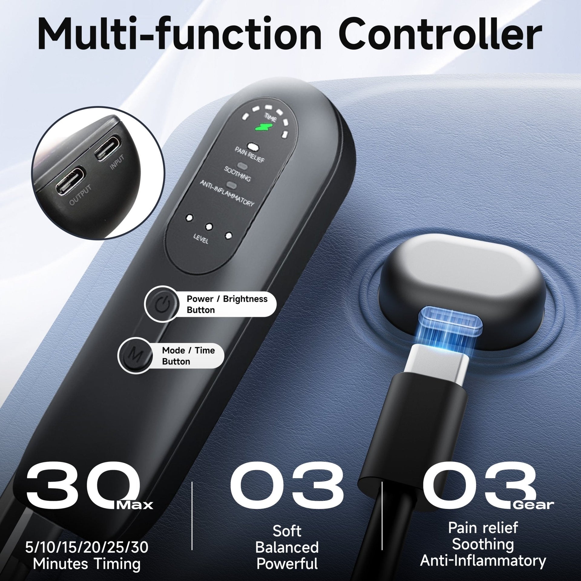 【Smart Customization Features】 The belt includes a memory function to restore previous settings, three modes (constant light for pain relief, 10Hz pulse for relaxation, and 40Hz pulse for anti-inflammatory effects), three power levels, and a timer adjustable up to 30 minutes. Just 10-30 minutes daily can accelerate recovery, ease pain, and relax muscles.