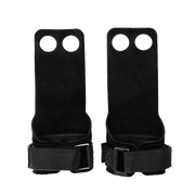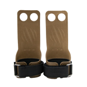 DO NOT use or chalk these grips until you ensure the grips are the correct size. Sizing is approximate and often times a personal preference, so please keep in mind that you cannot return the grips once they have been used. Place your middle and ring finger into the holes and adjust the hook and loop strap comfortably around your wrist. You should be able to nearly open your hand fully so the leather lies flat in your hand.