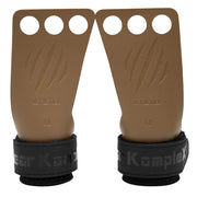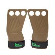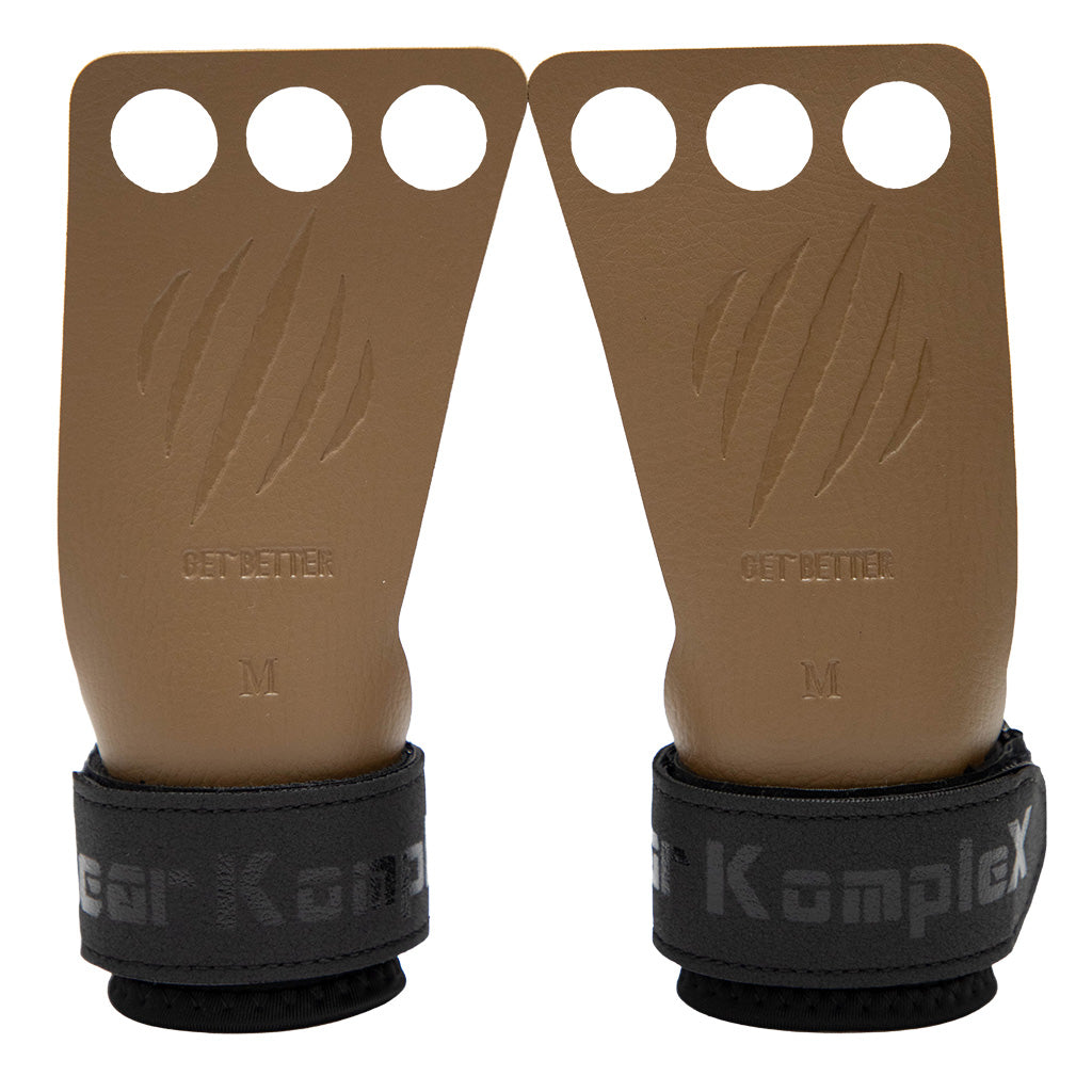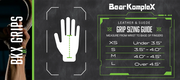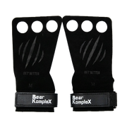 - Manufactured from genuine leather in the tan and grey grips and a thinner suede leather in the black grips, featured with a custom wrist strap which is designed for comfort and support positioned under the buckle. Bear KompleX Cross training grips will NOT dig into your wrist!