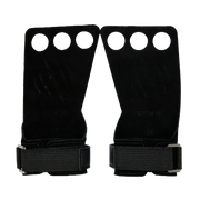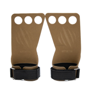 DO NOT use or chalk these grips until you ensure the grips are the correct size. Sizing is approximate and often times a personal preference, so please keep in mind that you cannot return the grips once they have been used. Place your index, middle, and ring finger into the holes and adjust the hook and loop strap comfortably around your wrist. You should be able to nearly open your hand fully so the leather lies flat in your hand.