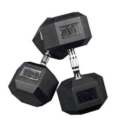 Workout with dumbbells to increase your range of motion and stay injury free while building size and strength. Six-sided and rubber coated, PRx Rubber Hex Dumbbells will have low impact on your floor and won't roll around once you set them down.